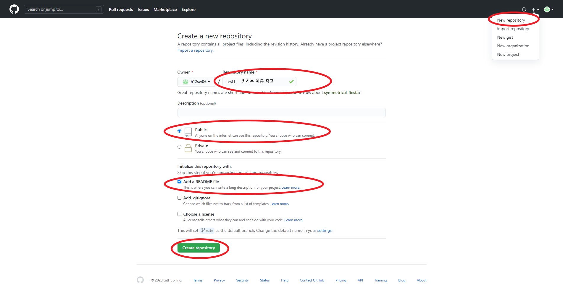 브랜치가 기본값이 main으로 나와있을 겁니다