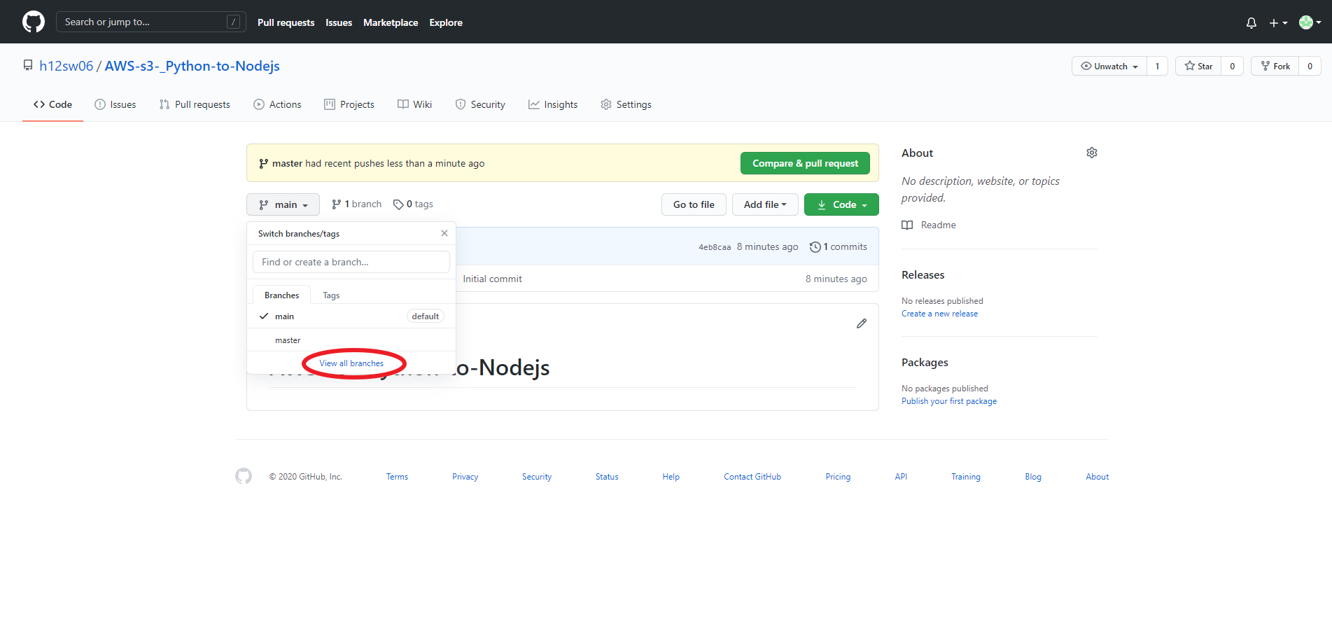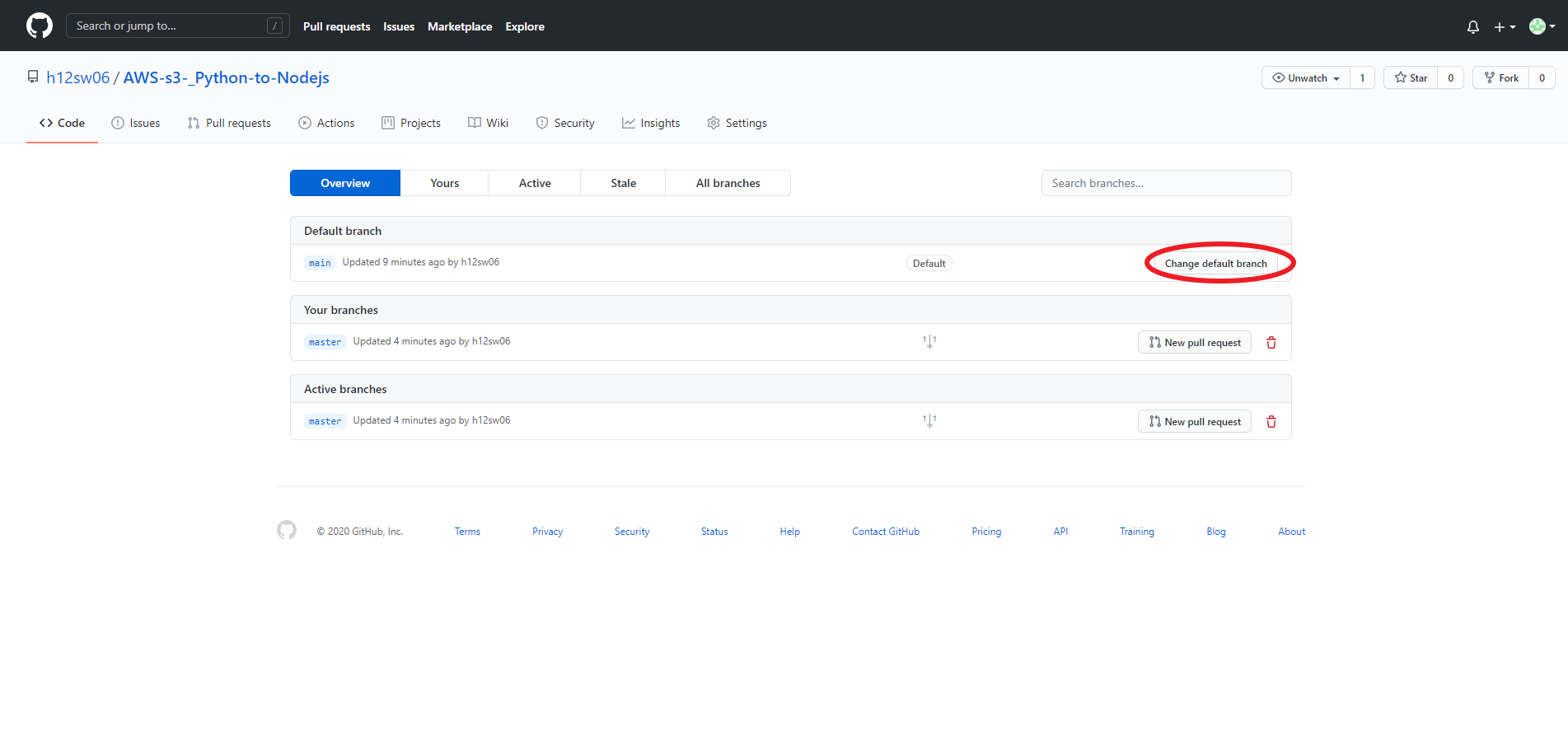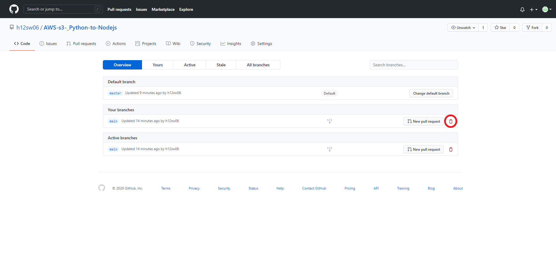 자신이 만든 repository이름 클릭 후(저는 AWS-s3-_Python-to-Nodejs입니다.)