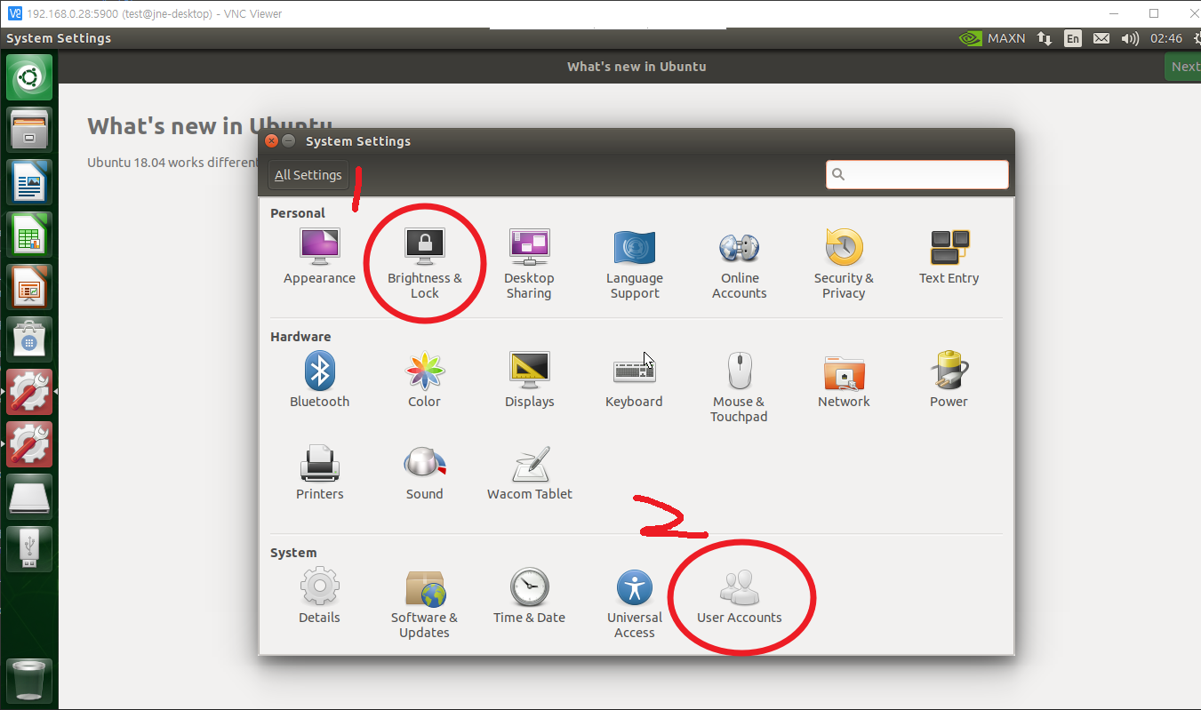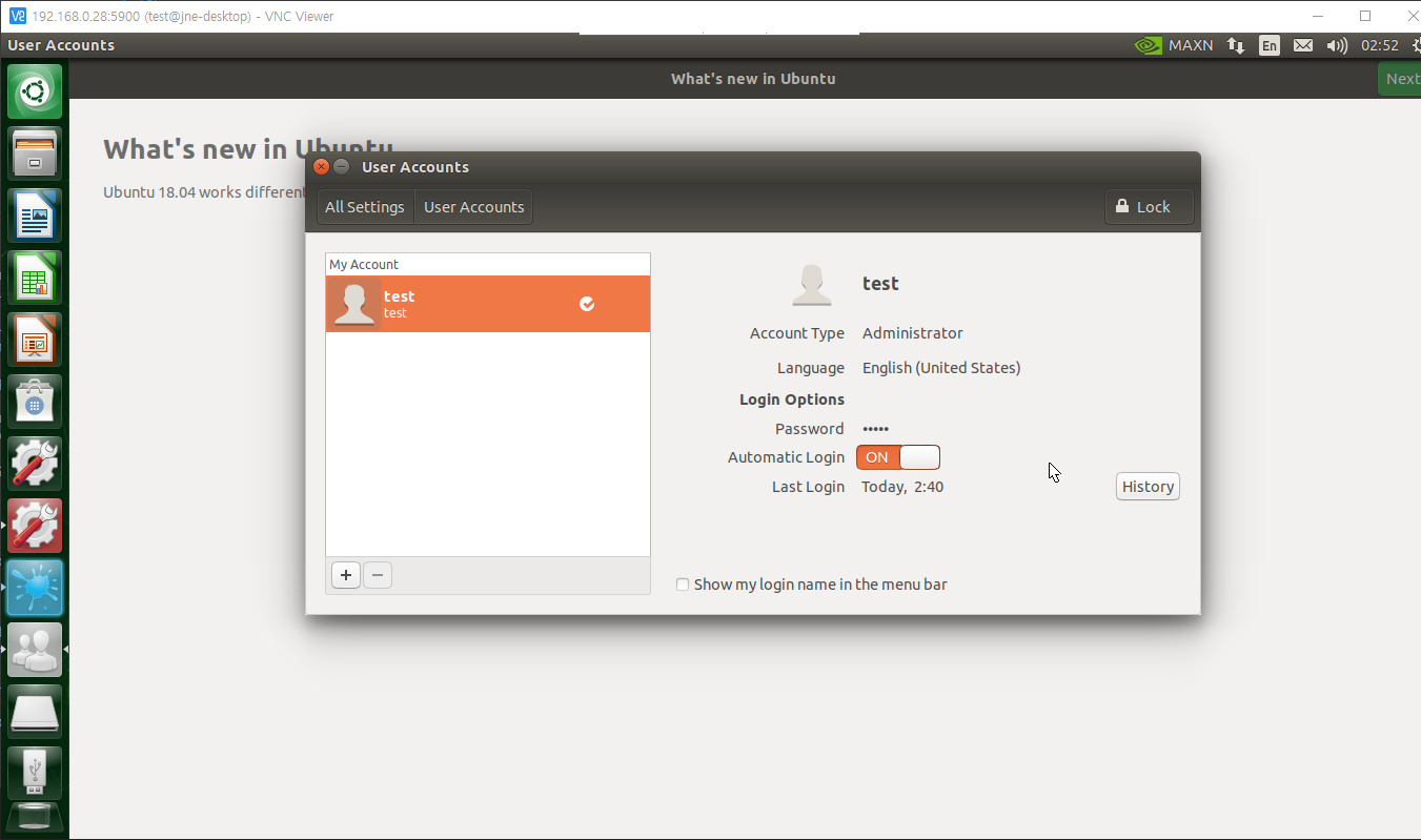 VNC 같은 경우에는 로그인된 계정을 원격 제어하기 때문에 화면 보호&자동 로그인을 활성화해주어야 합니다