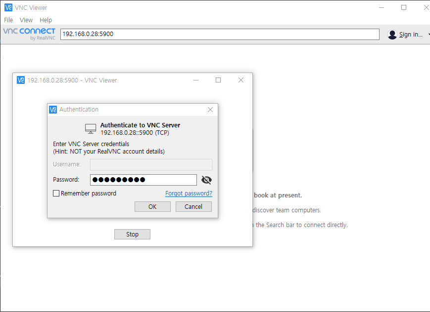 그리고 VNC를 켜면 패스워드 입력하라고 나오는데