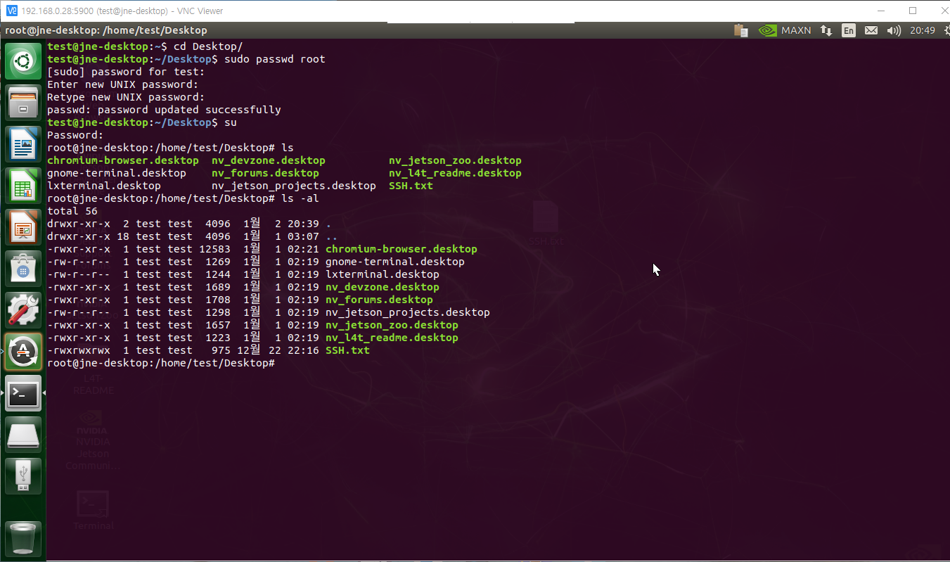 바탕화면으로 이동 -> root패스워드 생성 -> su진입 -> ls -al 해서 리스트 확인합니다. [위 사진 참조]