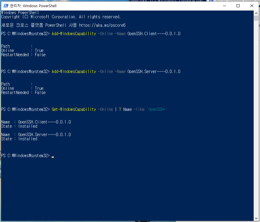 출처 : docs.microsoft.com/ko-kr/windows-server/administration/openssh/openssh_install_firstuse