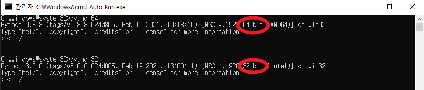이걸 64비트도 같은 방식으로 이름만 다르게 해서 (예 : python64, pip64) 진행후