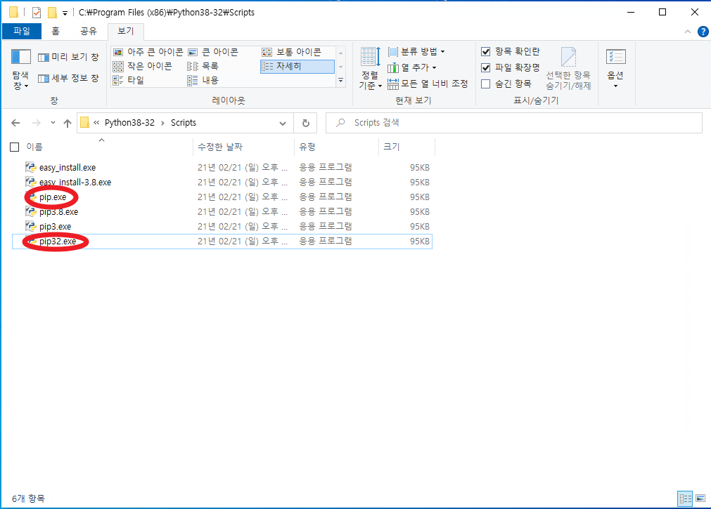 pip 위치는 python.exe 했던 사진에서 Scripts폴더 안에 있습니다