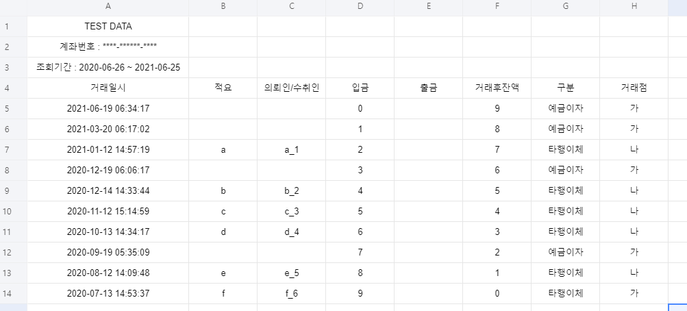 대충 엑셀 자료는 이렇다고 가정하고