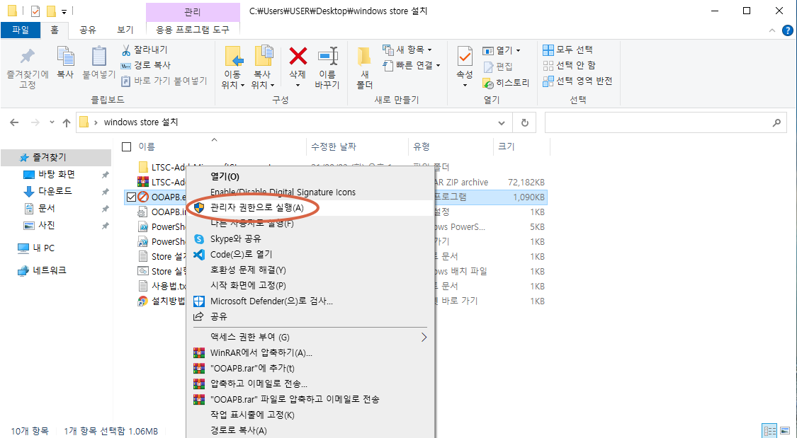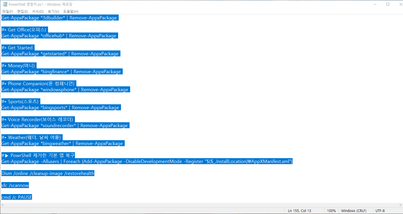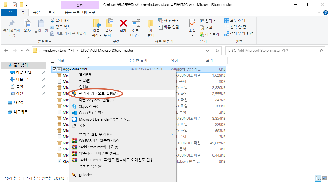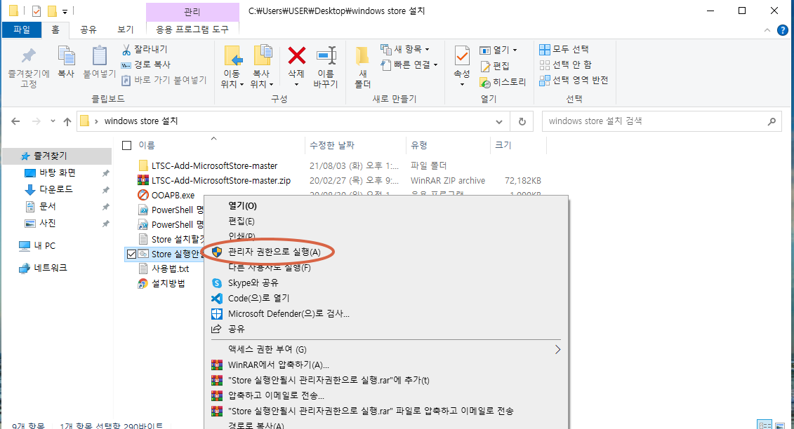 파워셀 관리자 권한으로 열고 붙여 넣기