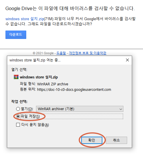 파일 저장 -> 확인 -> 다운로드 폴더에 확인