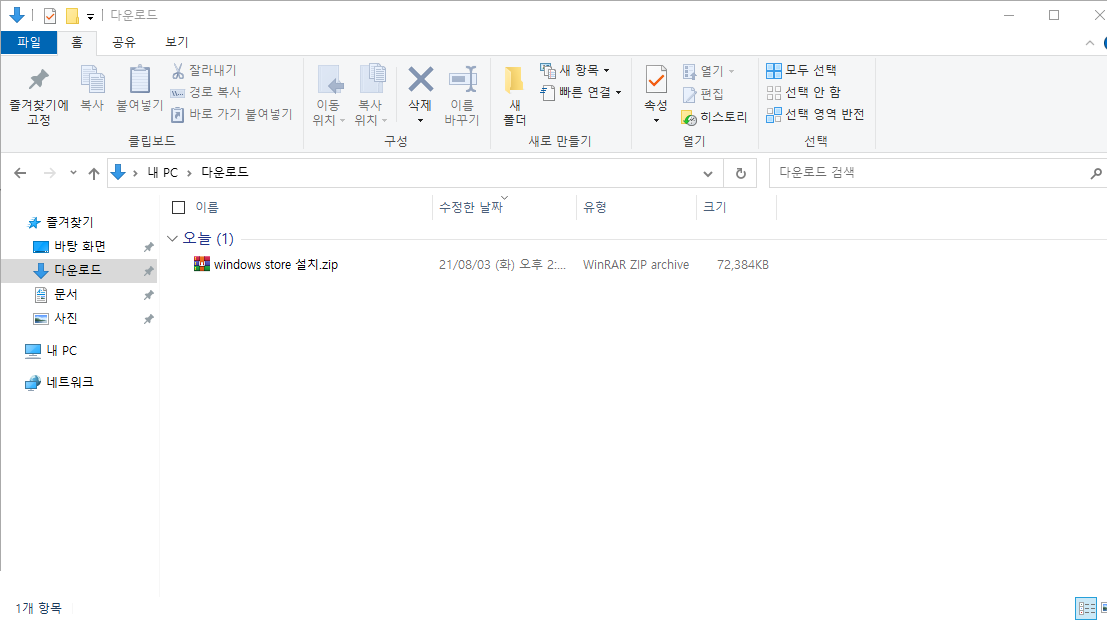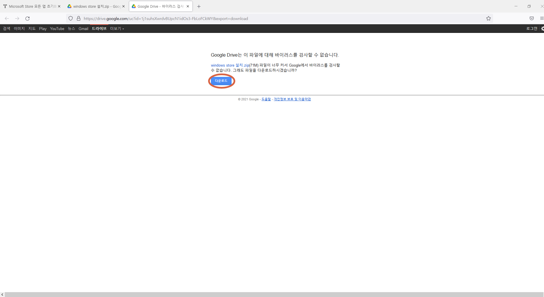 Microsoft Store 모든 앱 초기화 파일 링크는
