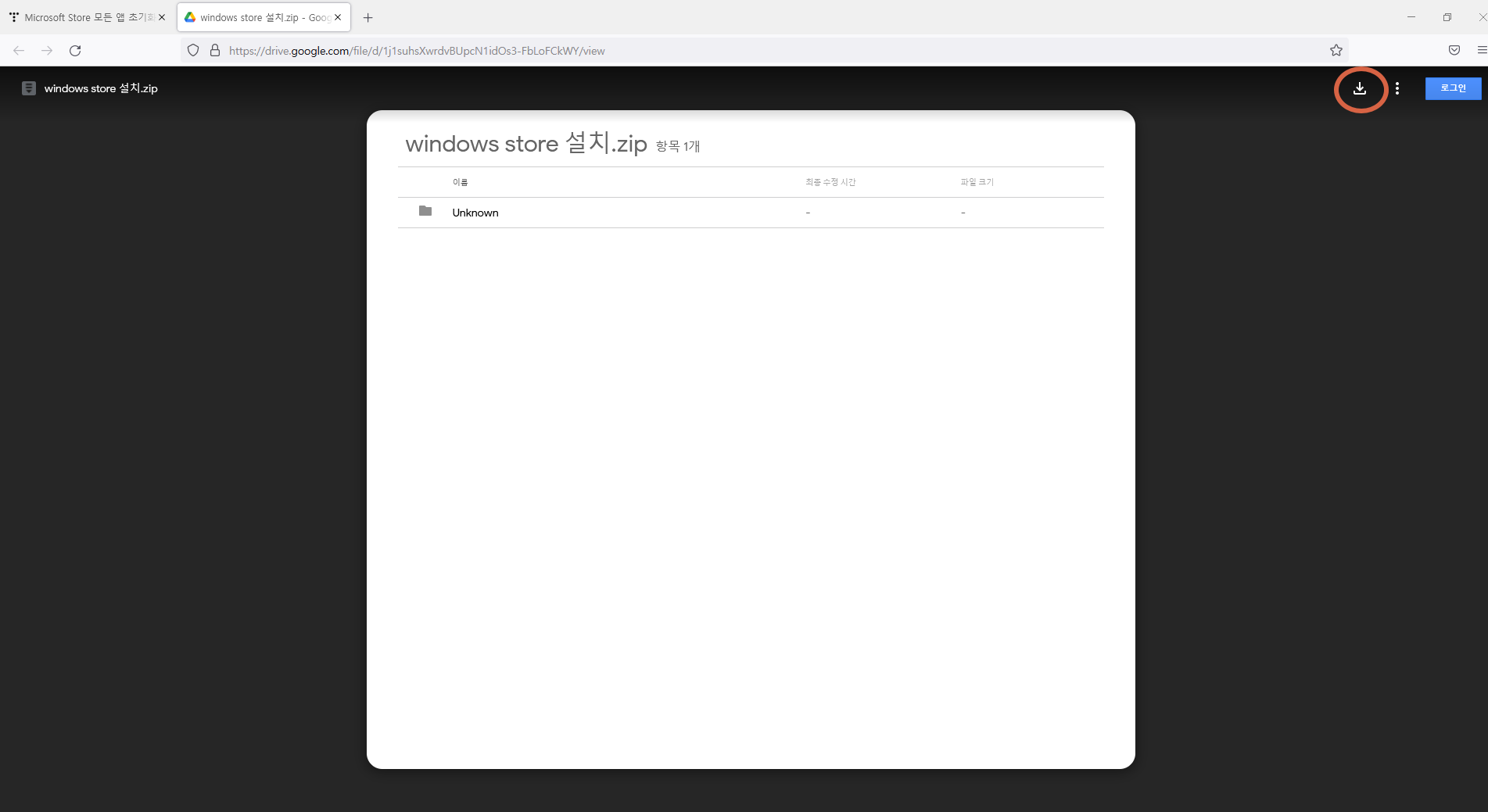 오른쪽 상단에 동그라미(다운로드 모양) 클릭