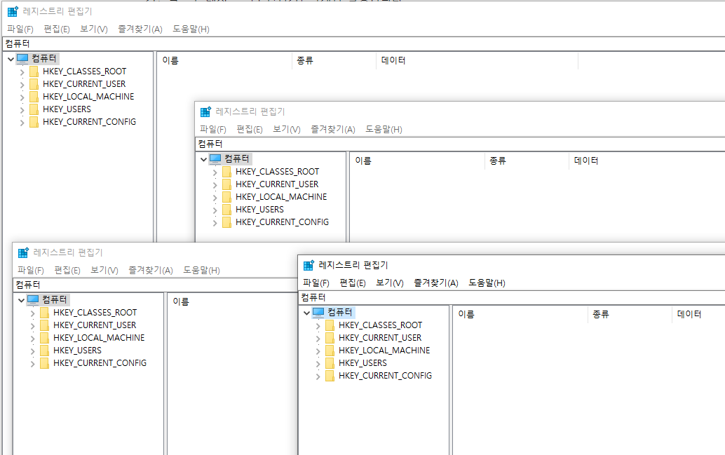 기본적으로 레지스트리 편집기는 1개만 실행됩니다.