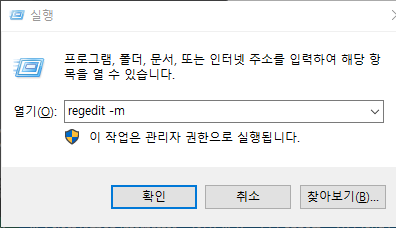 regedit -m 또는 regedit /m 으로 설정후 확인