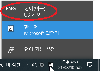 그리고 ENG <-> 한국어 단축키는 ALT + SHIFT 였습니다.」