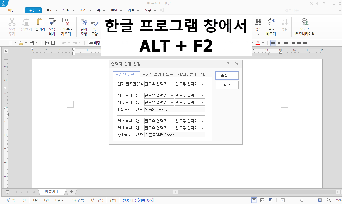 (이상하게 버그인지 없는데도 한컴 입력기가 있습니다..)