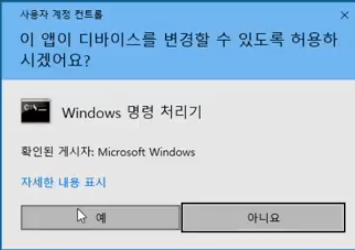 (추가 내용에서 사용자 계정 컨트롤을 최하로 사용하시고 쓰셨던 분들 한해서 생김)