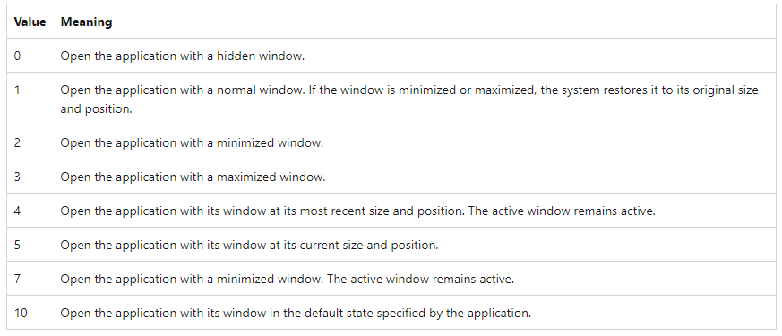 출처 : https://docs.microsoft.com/en-us/windows/win32/shell/launch