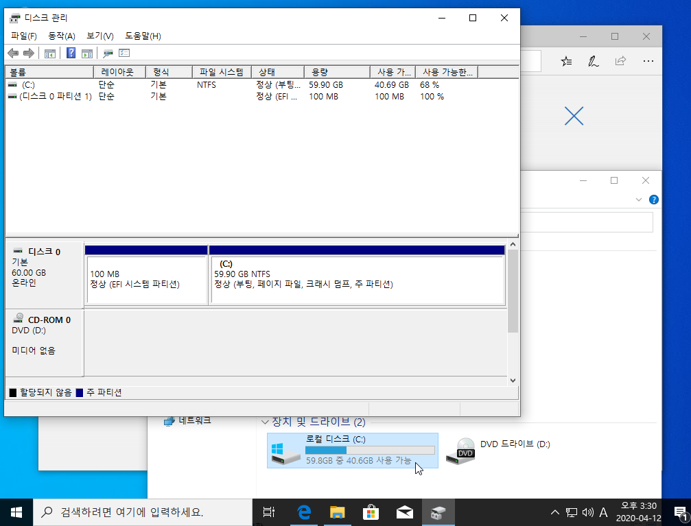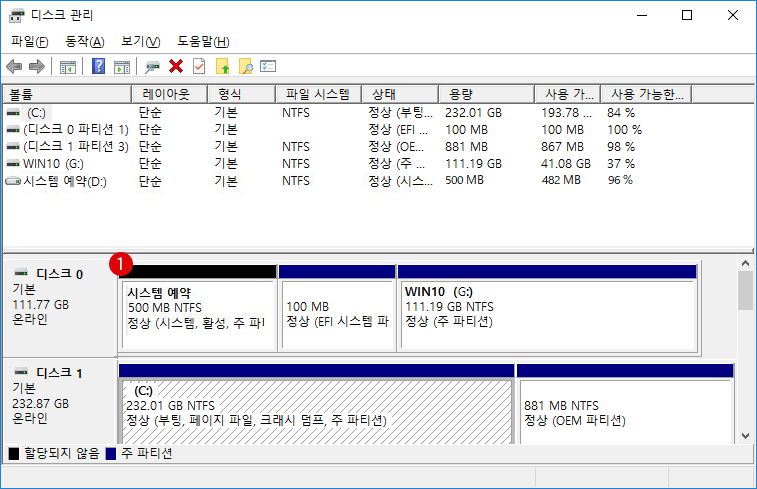 그냥 부팅 USB로 windows를 계속 설치하게 되면 아래 이미지 처럼 '시스템 예약' 이라는 파티션이 생성 됩니다.