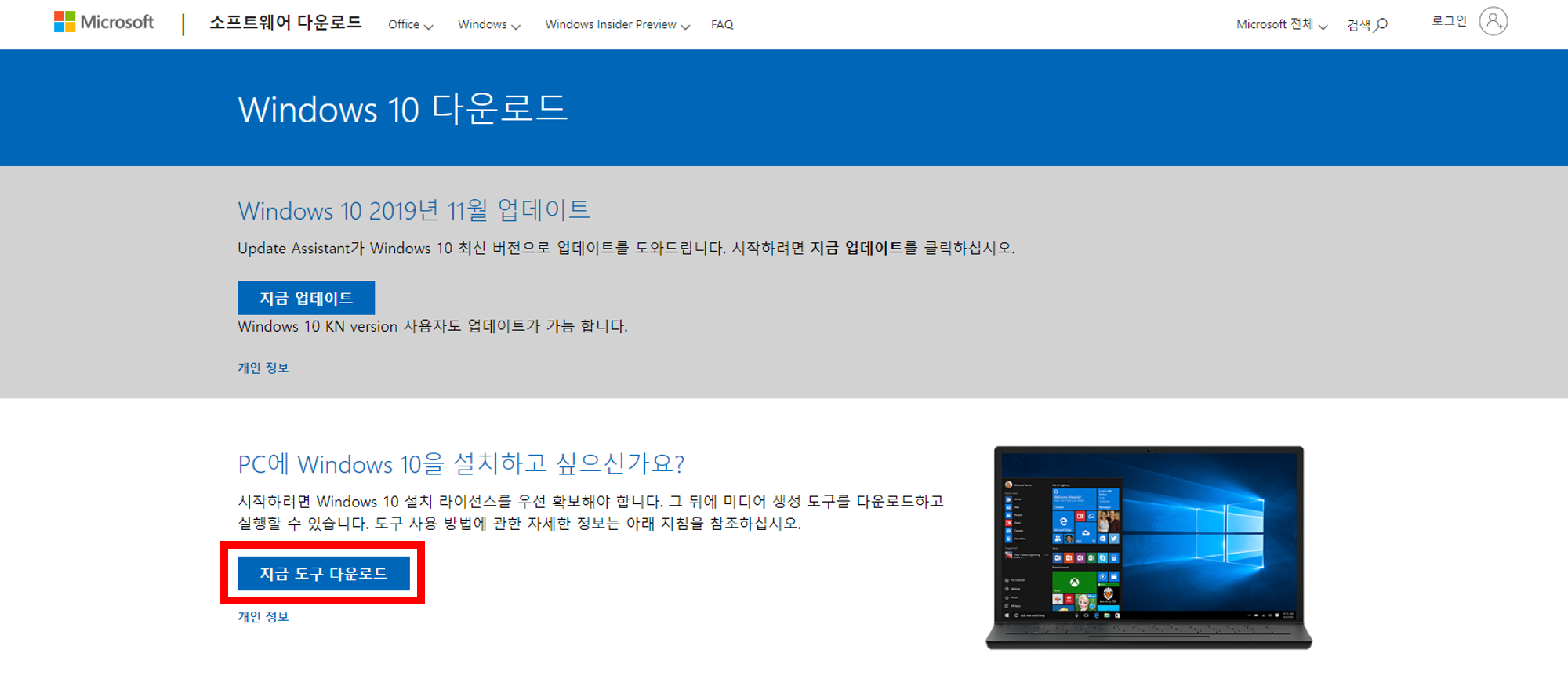 https://www.microsoft.com/ko-kr/software-download/windows10 <- ISO 파일