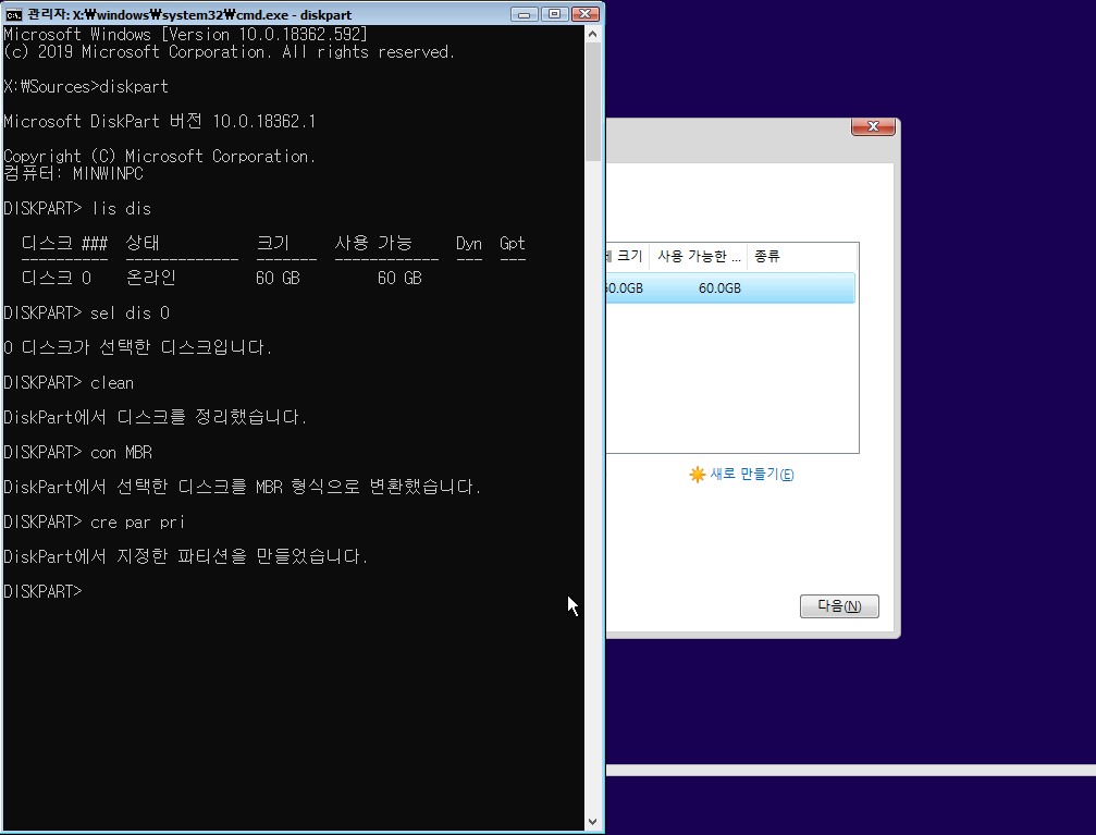 MBR방식을 했을 때 설치 진행이 안될 수가 있습니다.