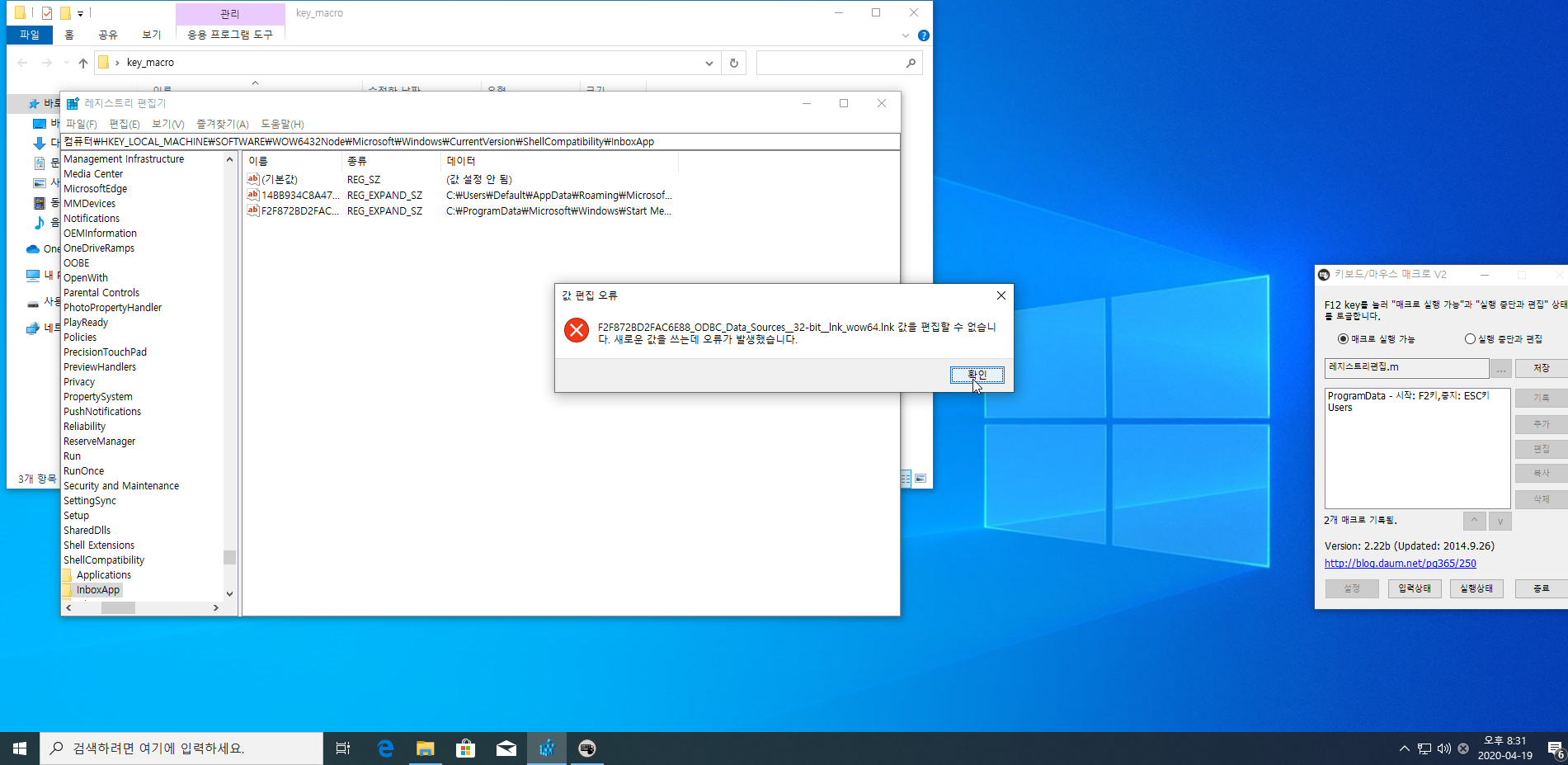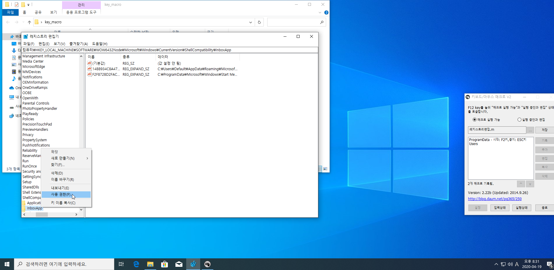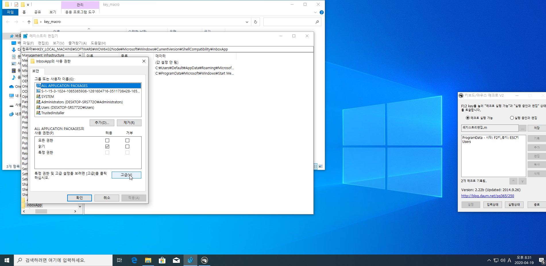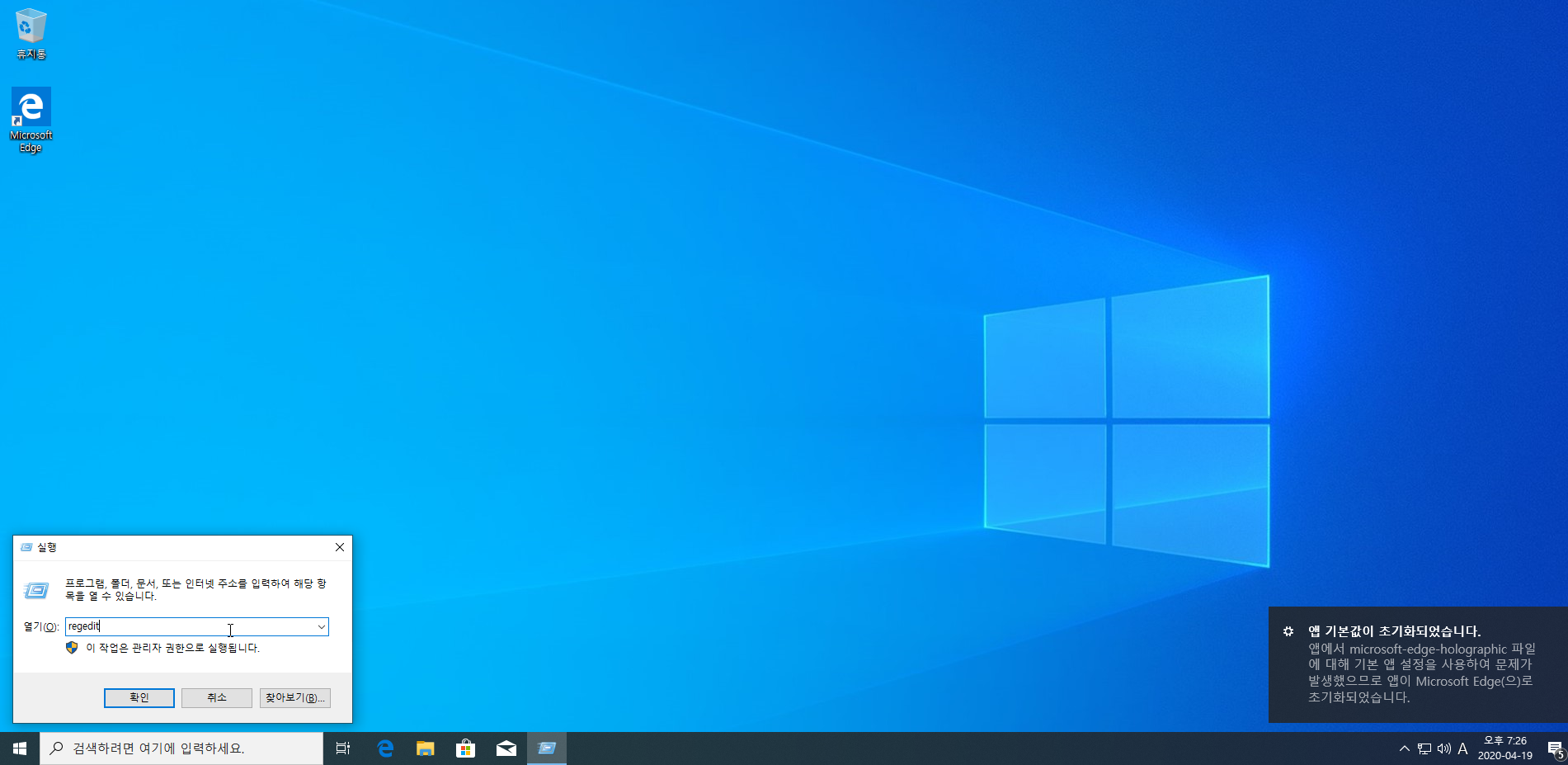 레지스트리 실행