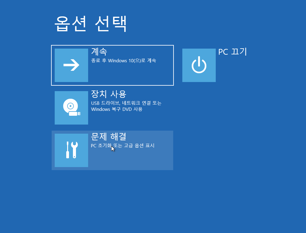 그리고 문제 해결 클릭
