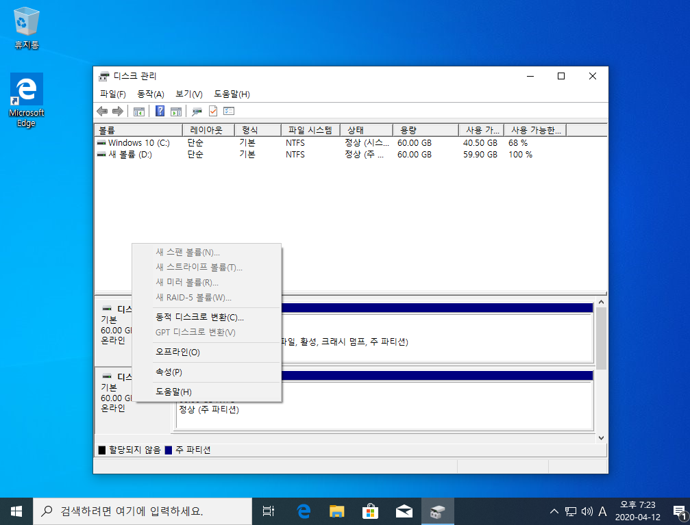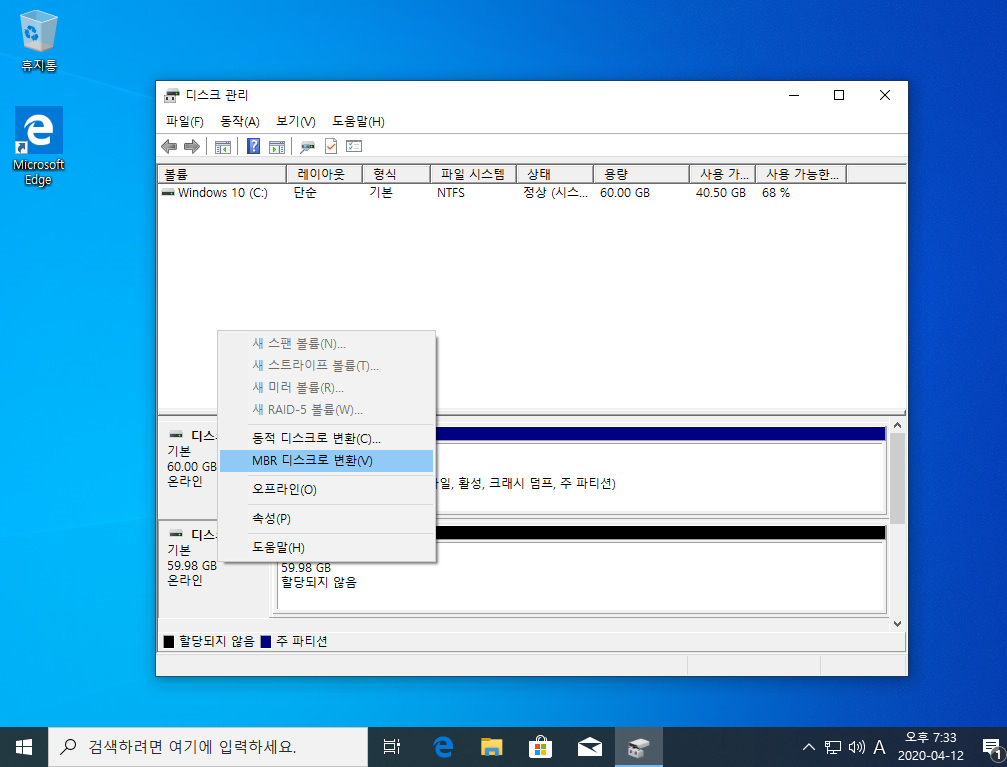 만약 디스크 변환이 안 나올 경우