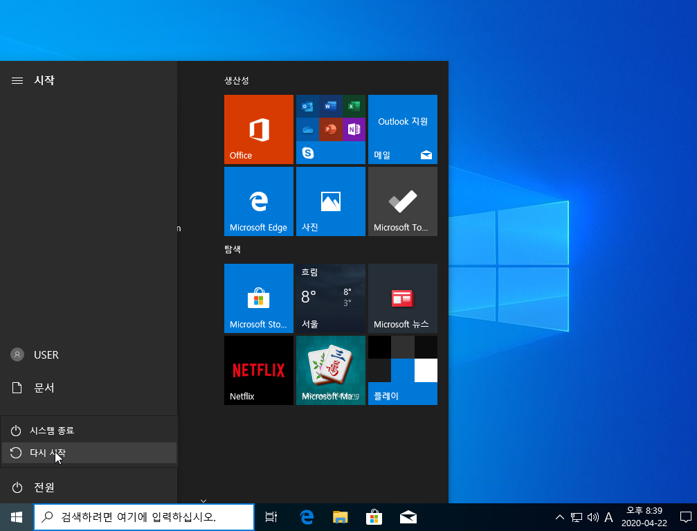 그리고 재부팅