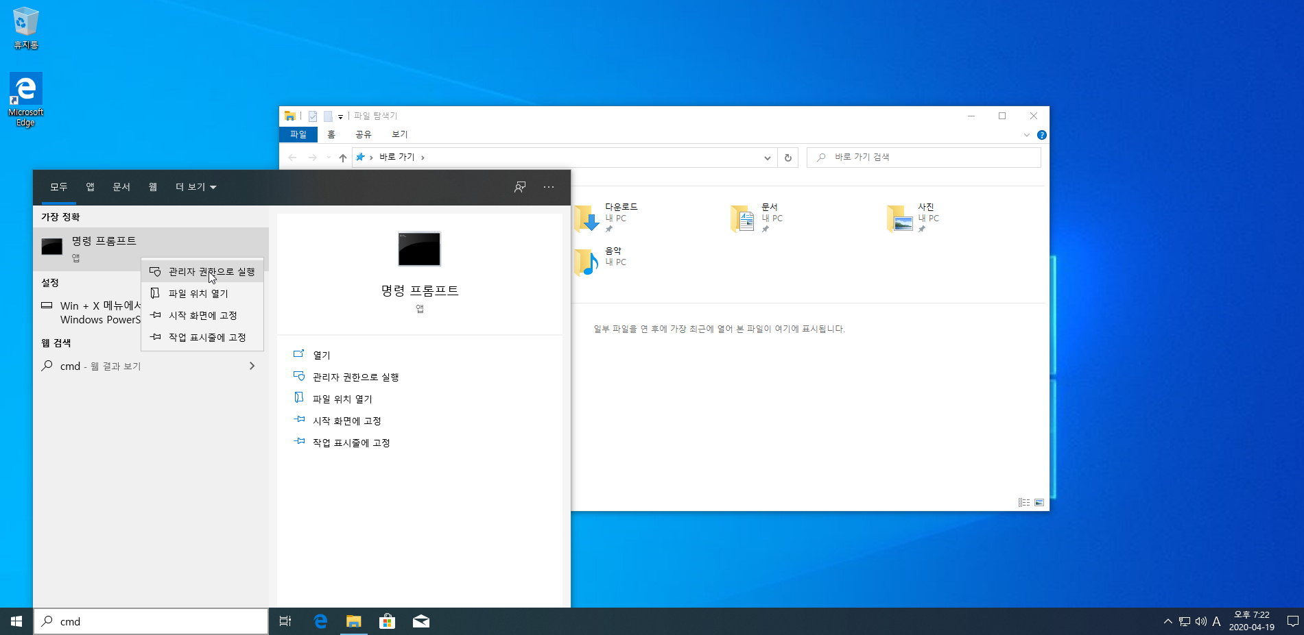 아직 끝난 게 아닙니다. 마지막 단계로 cmd 관리자 모드로 열어주세요