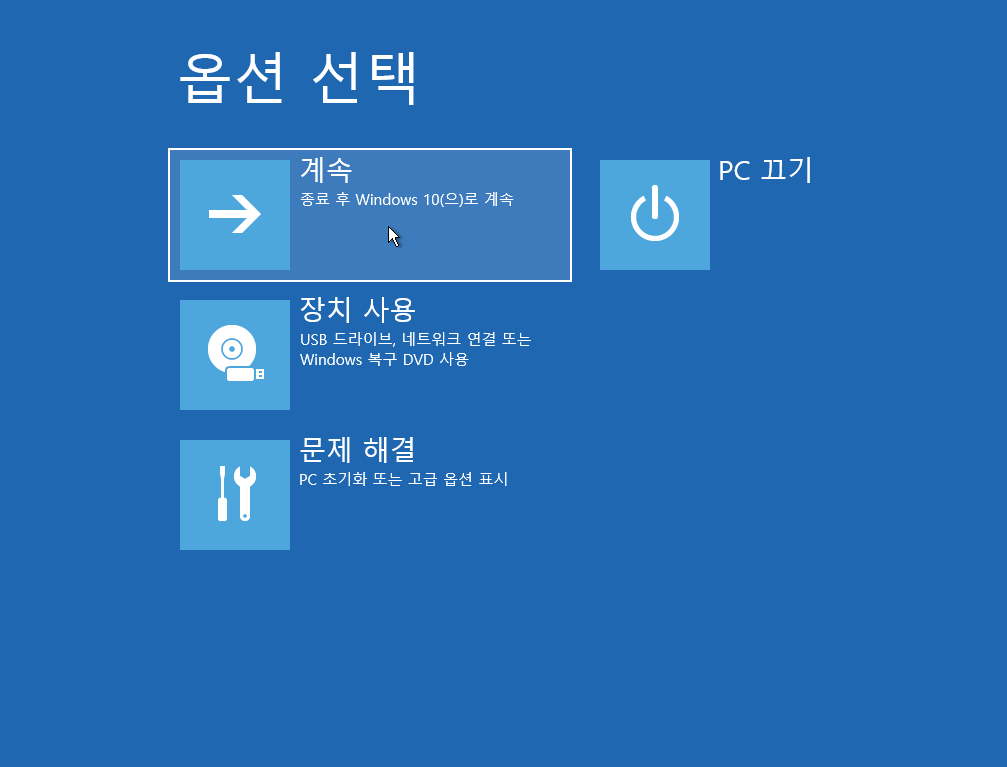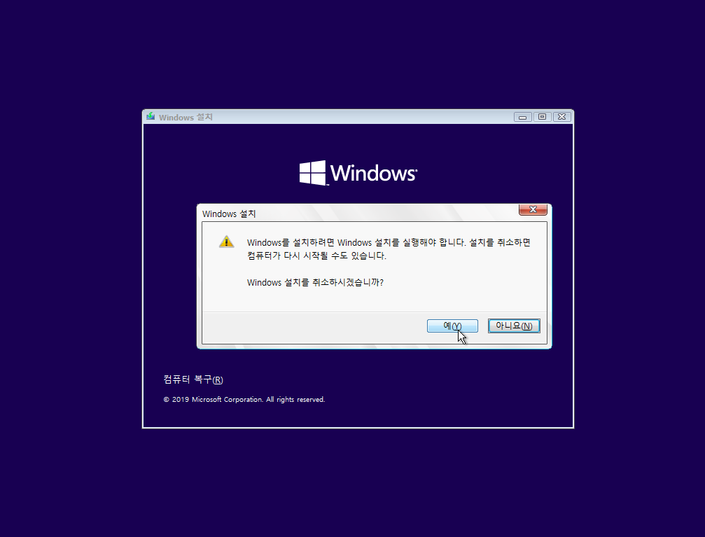 재부팅은 x표시 계속 누르면 windows설치 초기 화면에서 가능
