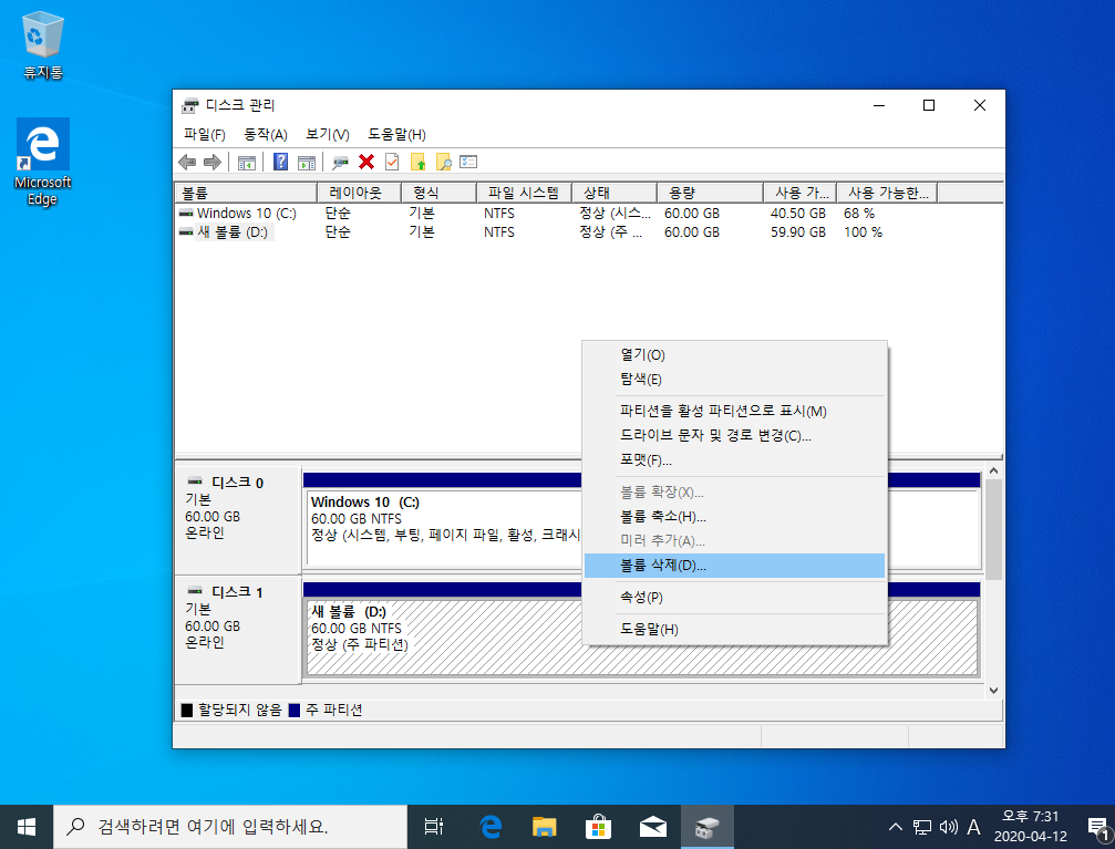 볼륨 삭제하고 진행하시면 되는데