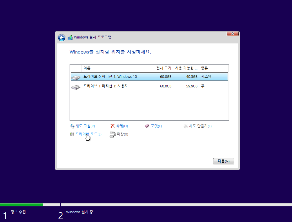 windows os 처음 설치하고 진행하셔야 합니다.