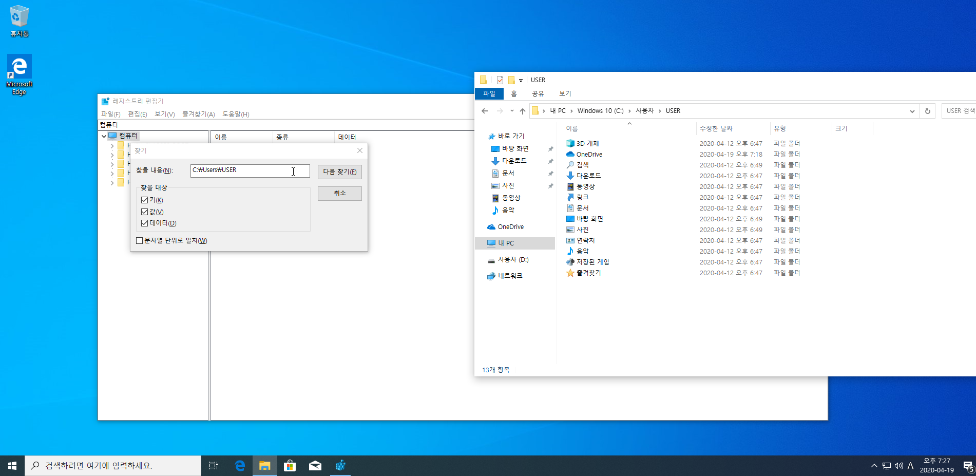 마지막 Users\계정명 복사하실 때 액세스 할 수 없다고 나올 겁니다.