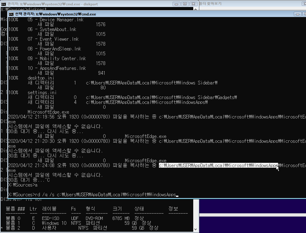 그리고 진행을 하다 보면 액세스 할 수 없다고 나오는 ctrl+z 해서 빠져나옵니다.
