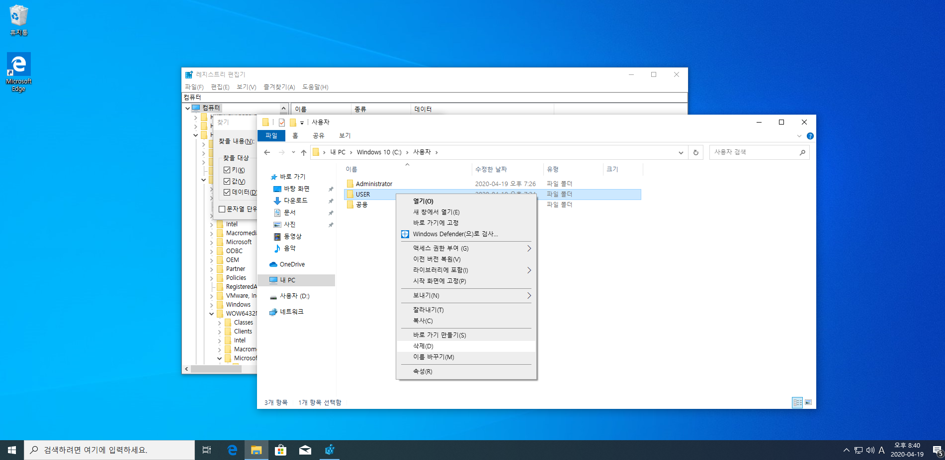 'rd /q /s '입력 후 우클릭 (사진 참조)