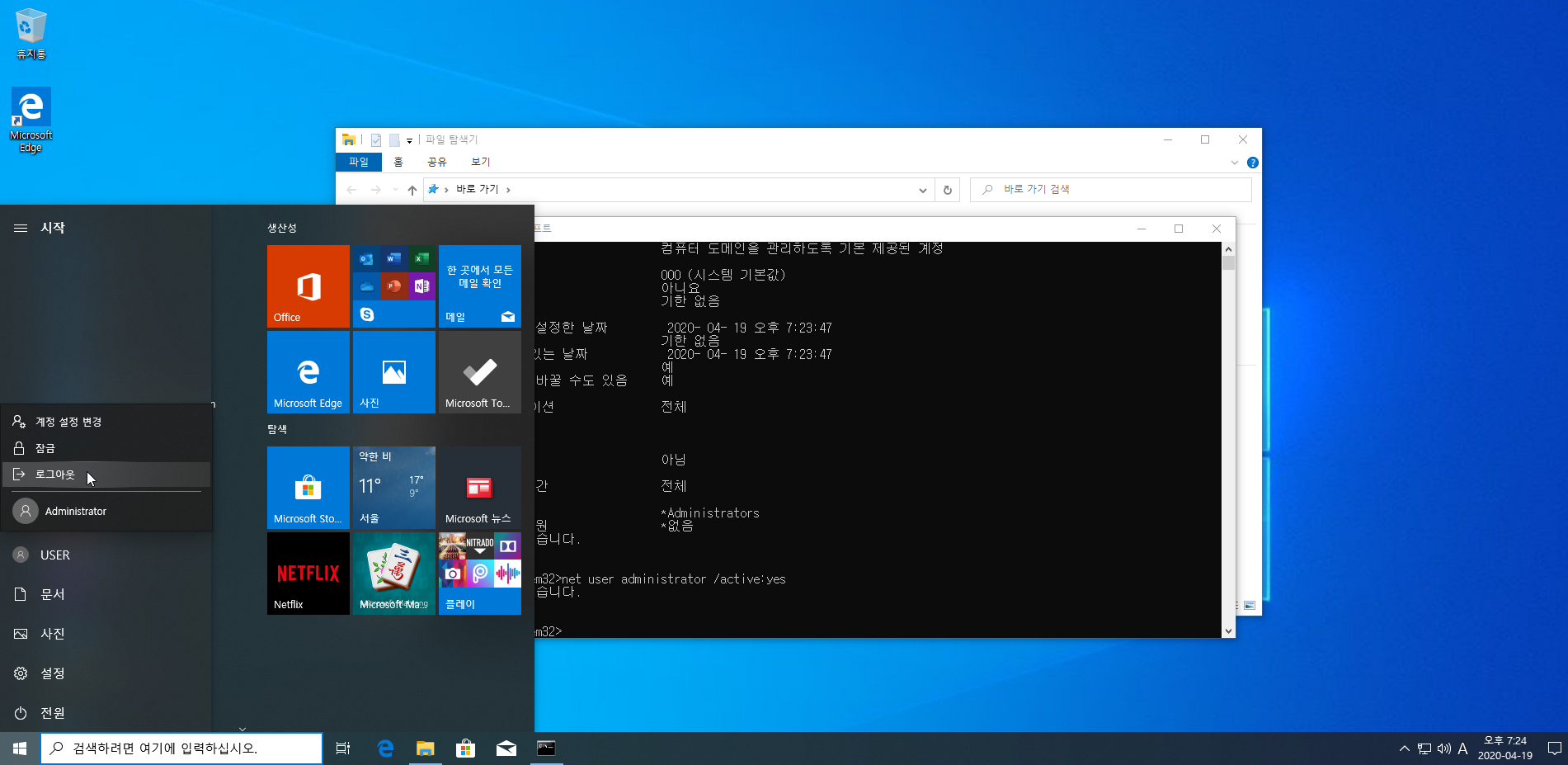 (administrator 활성화)