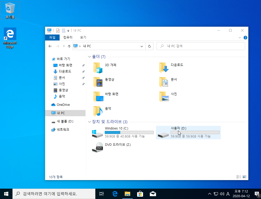 Windows OS 파티션 자동 생성 없이 만들기(예약 파티션 생성X)