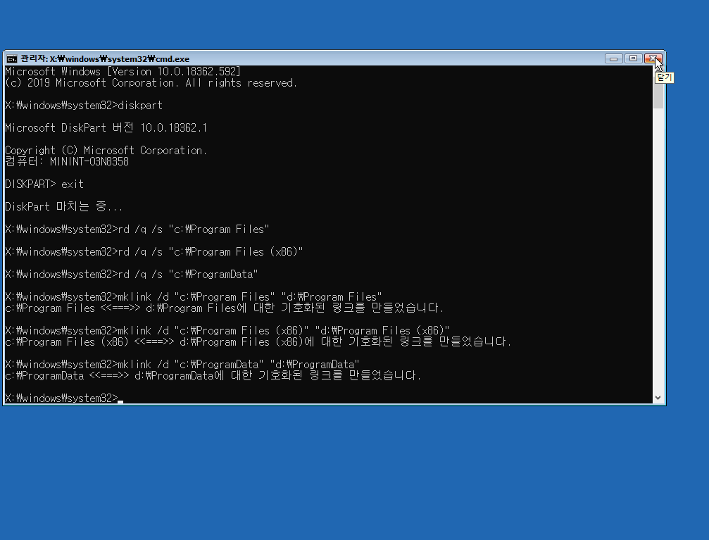 입력 후 diskpart 빠져나옵니다.