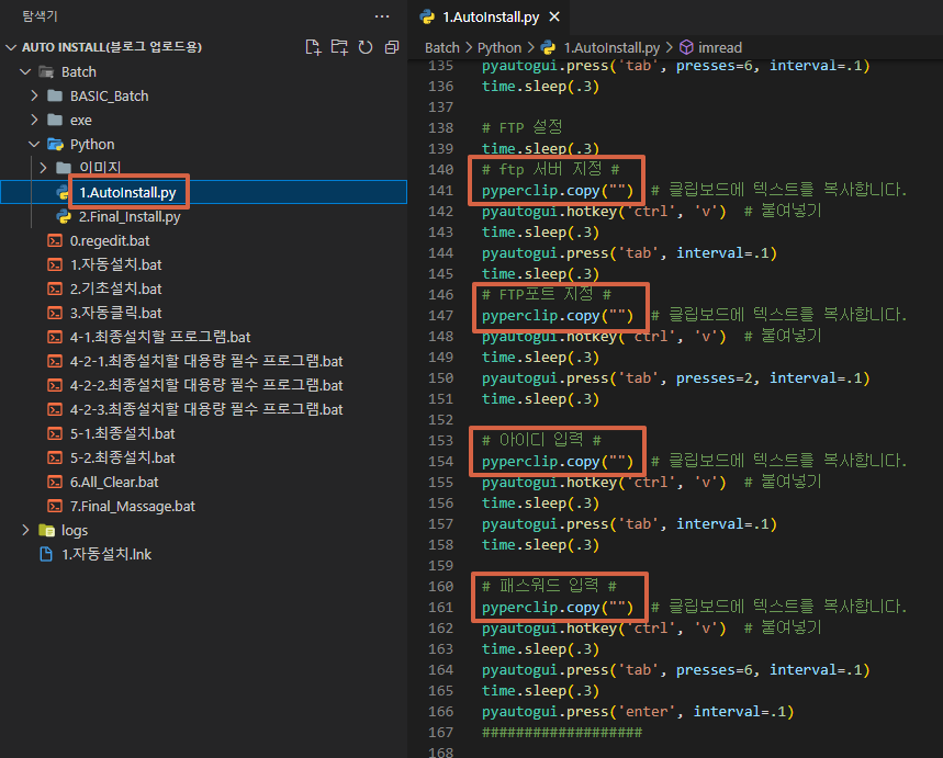 거기서 batch -> python -> 1.AutoInstall.py로 이동합니다.