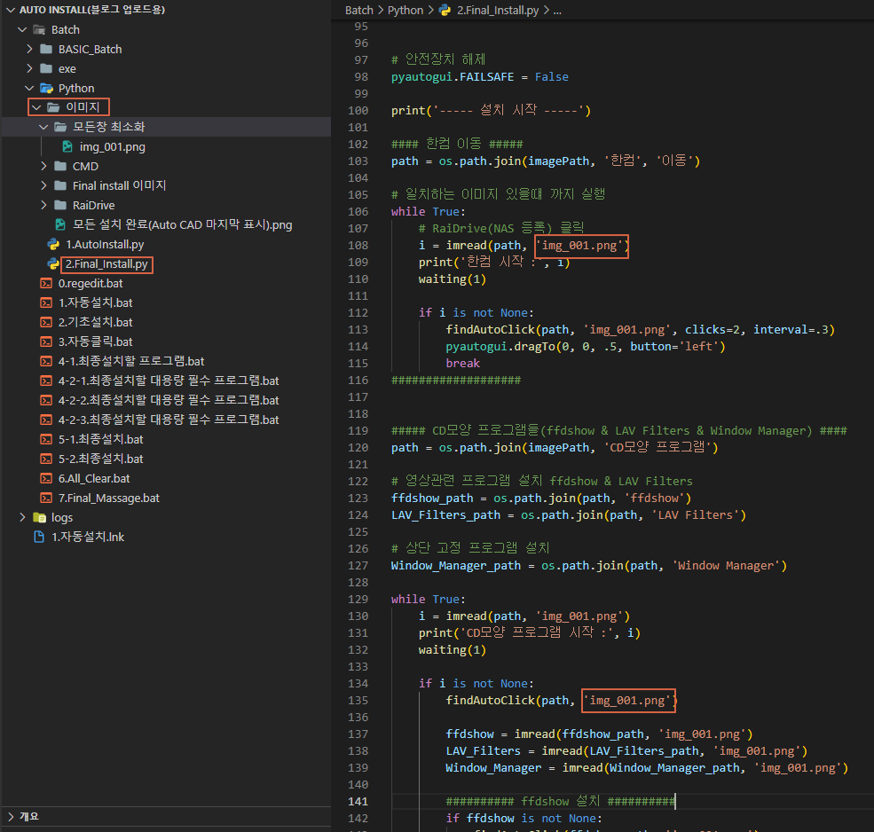 거기서 batch -> python -> 1.AutoInstall.py로 이동합니다.