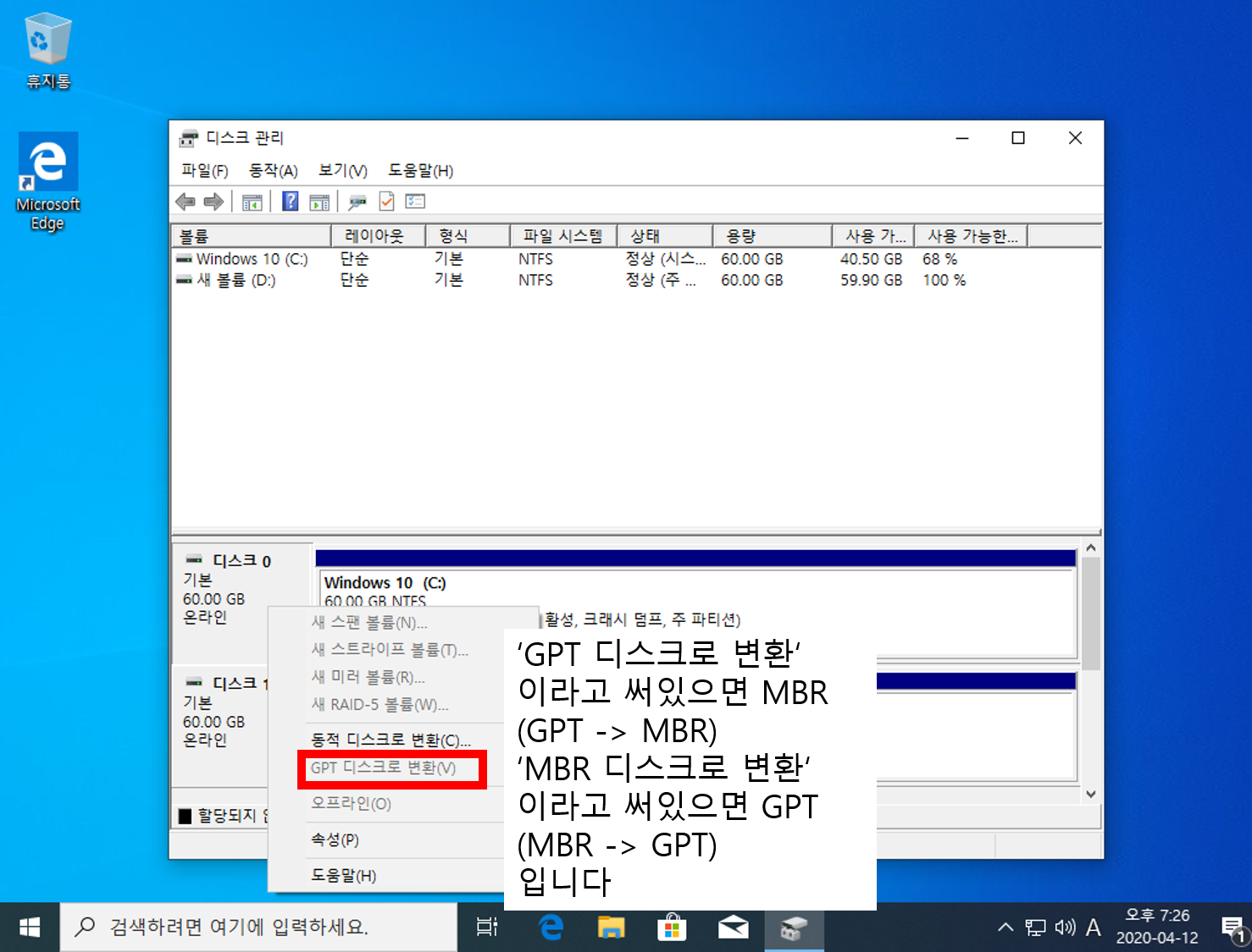 Windows 설치한 디스크 형식 알 수 있는 방법
