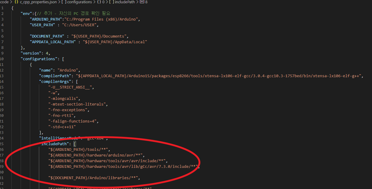 compilerPath는 컴파일하실 분만 쓰시면 되고 주석처리 하셔도 됩니다.