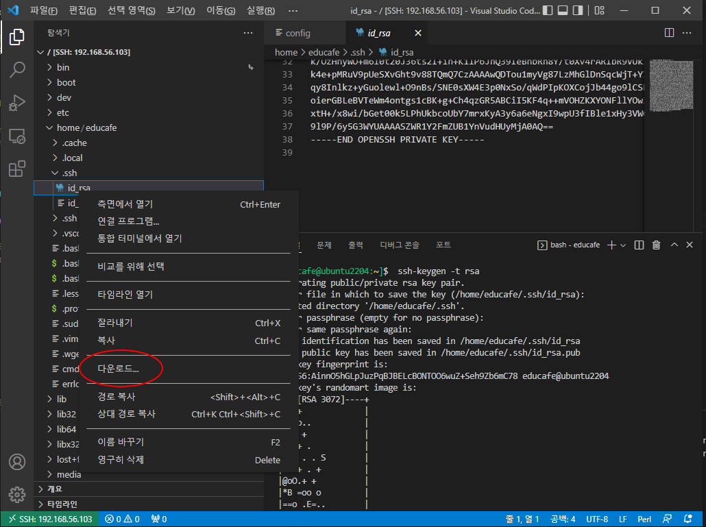 다시 SSH 연결 해보면 잘되는것을 확인할수 있습니다.