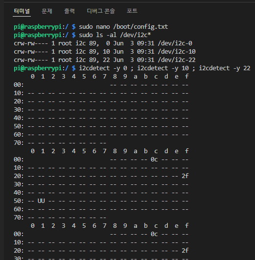 (i2cdetect -y 검색된 숫자 입력[이미지 참조])