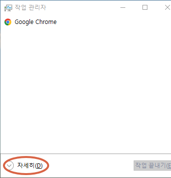 작업 관리자(단축키 : ctrl + shift + esc)에 자세히 클릭