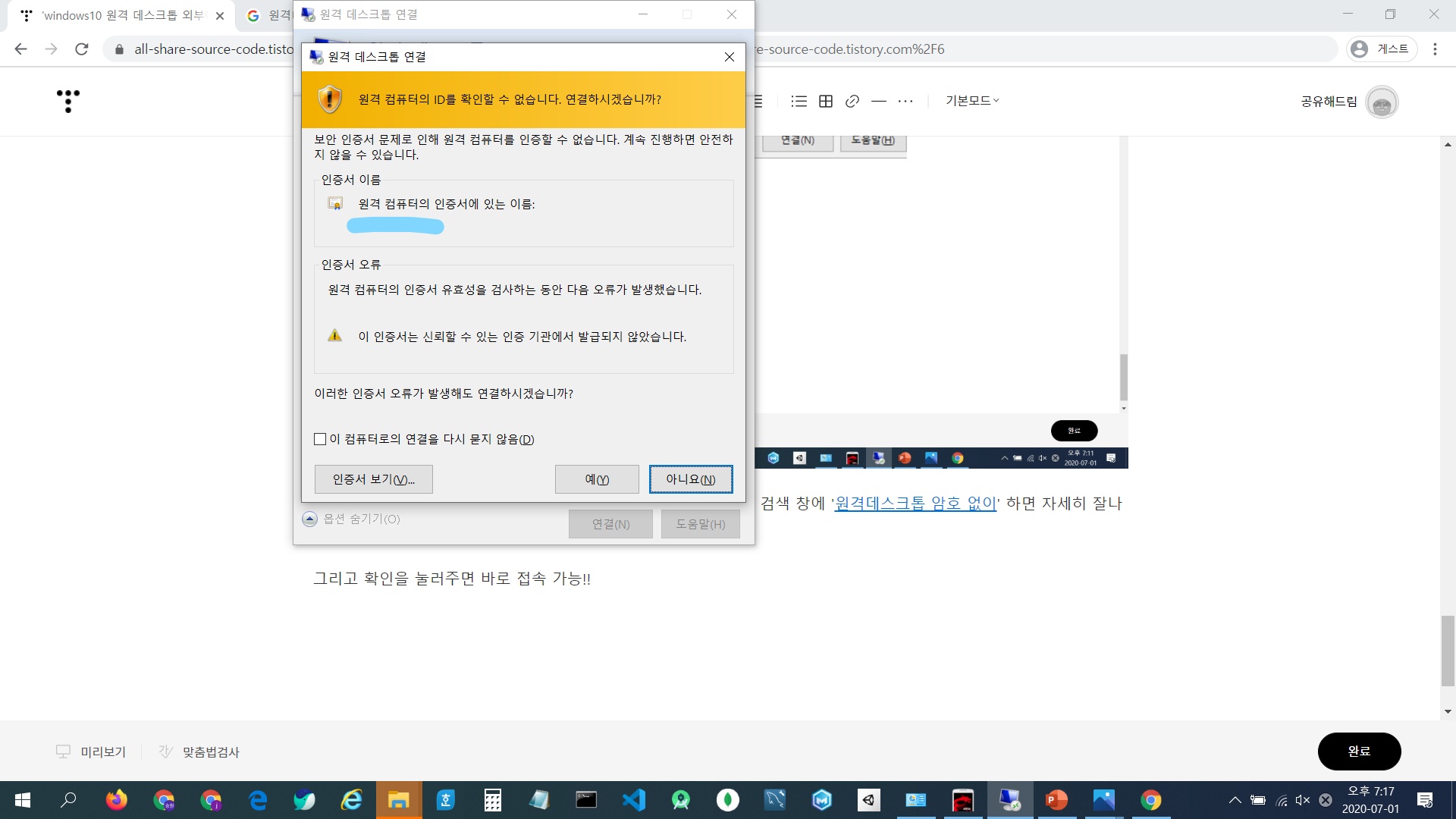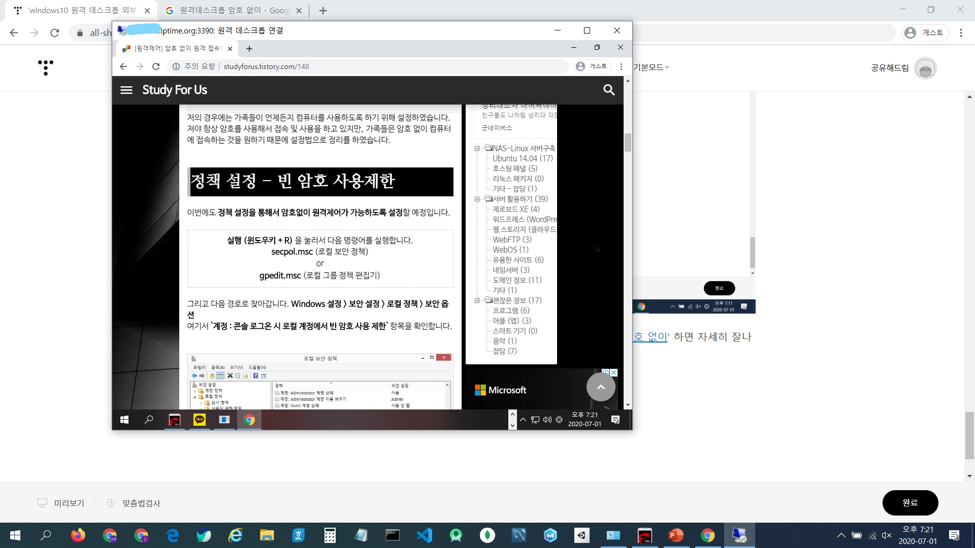 일단 기본적으로 원격 데스크톱 외부에서 연결하기 진행해주세요