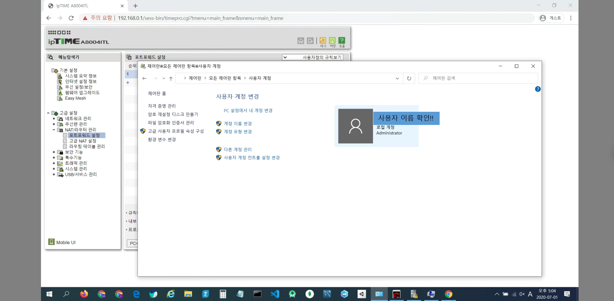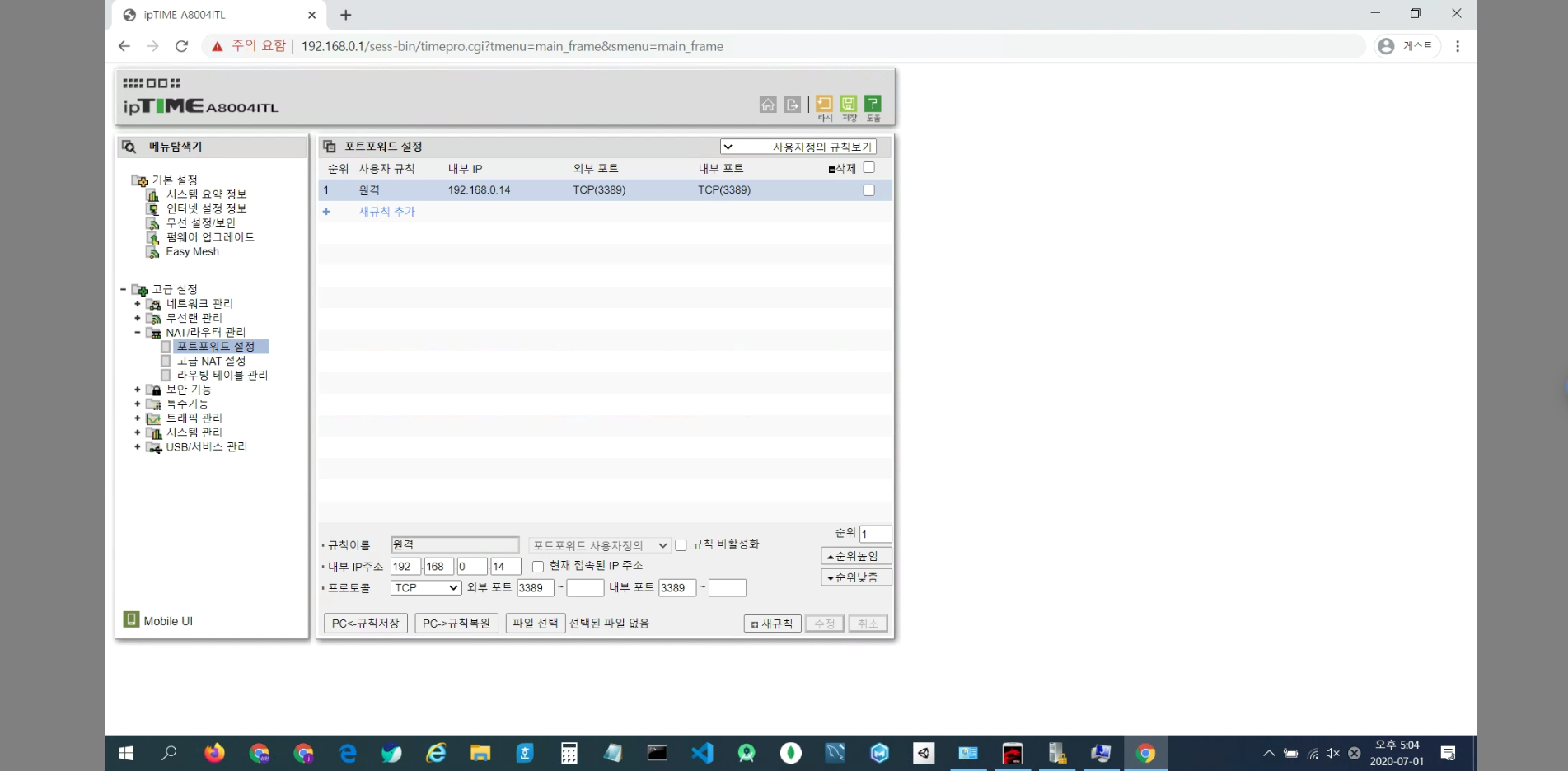 컴퓨터에 iptime DDNS 하고 포트를 입력해줍니다.