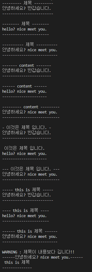 위와 같이 내용의 개수를 세서 자동적으로 구분선을 만들어 깔끔하게 출력하는 함수를 만들어 봤습니다.