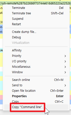 Copy "Command line"을 클릭합니다. (이미지 참조)