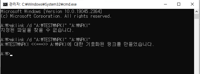 mklink /d "A:\TEST\NPKI" "A:\NPKI"
