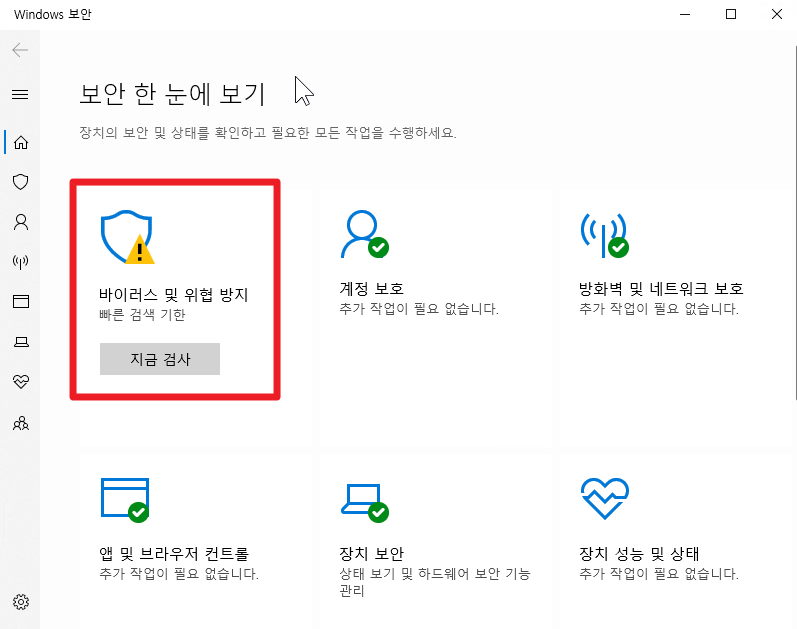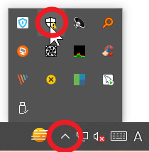 오른쪽 하단 숨겨진 아이콘 -> windows 보안(방패 모양) 클릭 [아래 이미지 참조]