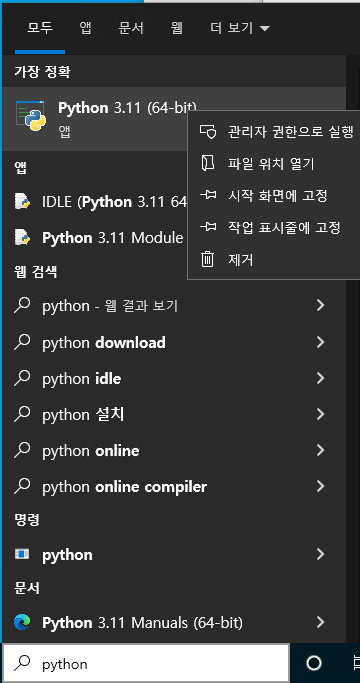 해당 버전에 맞는 프로그램 모두 설치 합니다.
